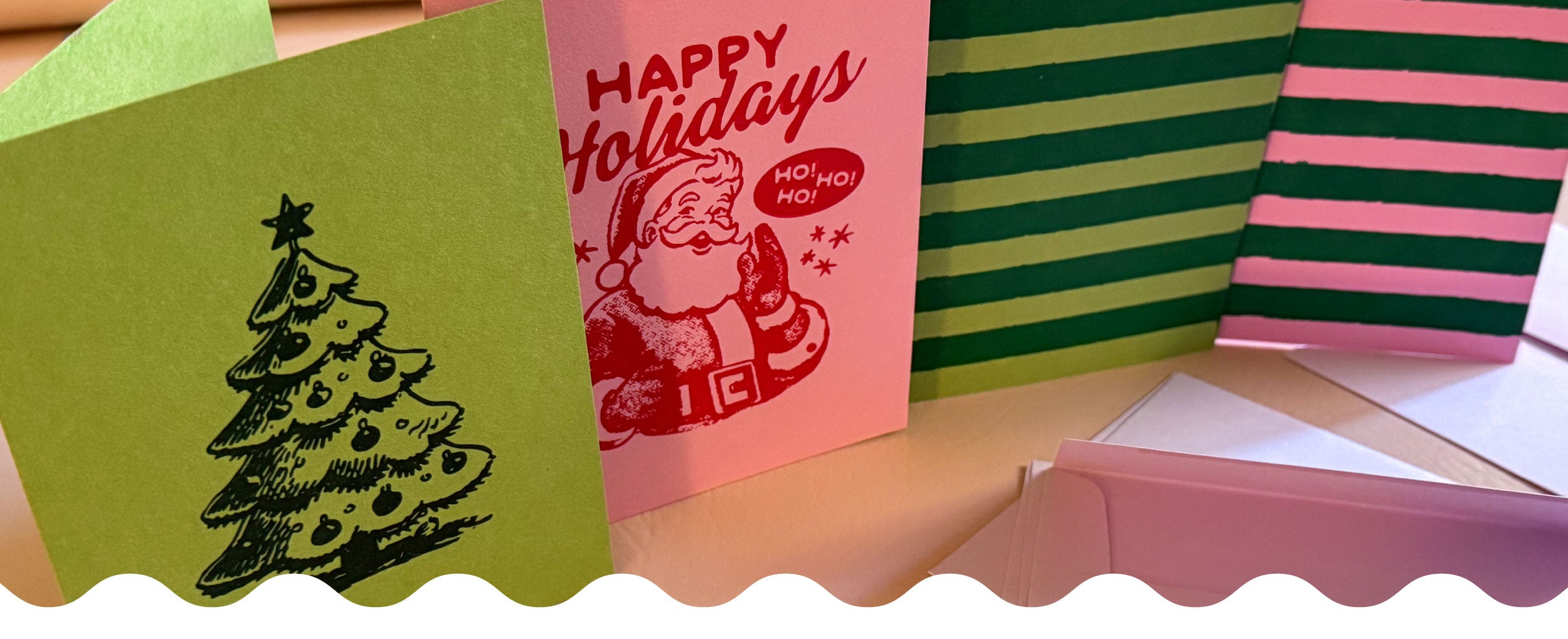 A collection of Christmas cards in warm white and colorful paper. Personalization option available in the warm white sets to make them more you this holiday season!